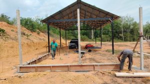 Kerja-kerja pembinaan asrama dan surau sementara.